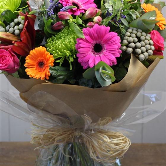 We make every effort to create a bouquet with the same flowers as in the picture, however due to fluctuating prices and availability we may have to substitute some flowers for another just as beautiful bloom.